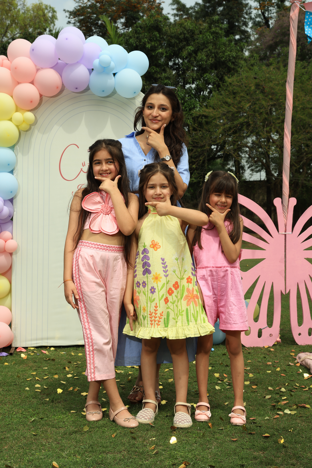 🌼 Vibrant, playful garden and butterfly details growing from the hem