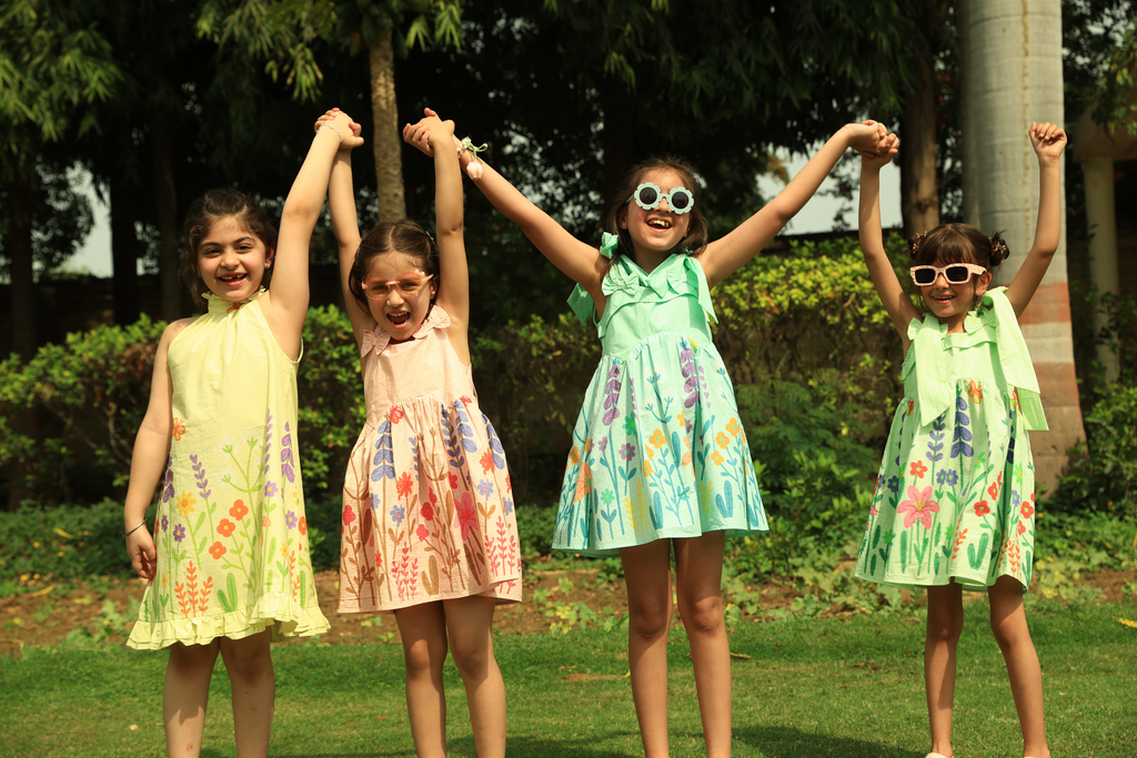 This radiant Cutie Patuti dress is crafted from the softest, breathable cotton to keep your little one cool and comfy on warm days. Featuring a gorgeous pastel yellow base with vibrant garden motifs, an elegant gathered neckline, and a playful ruffled hem, it’s an absolutely magical choice for parties, picnics, and everyday twirling!