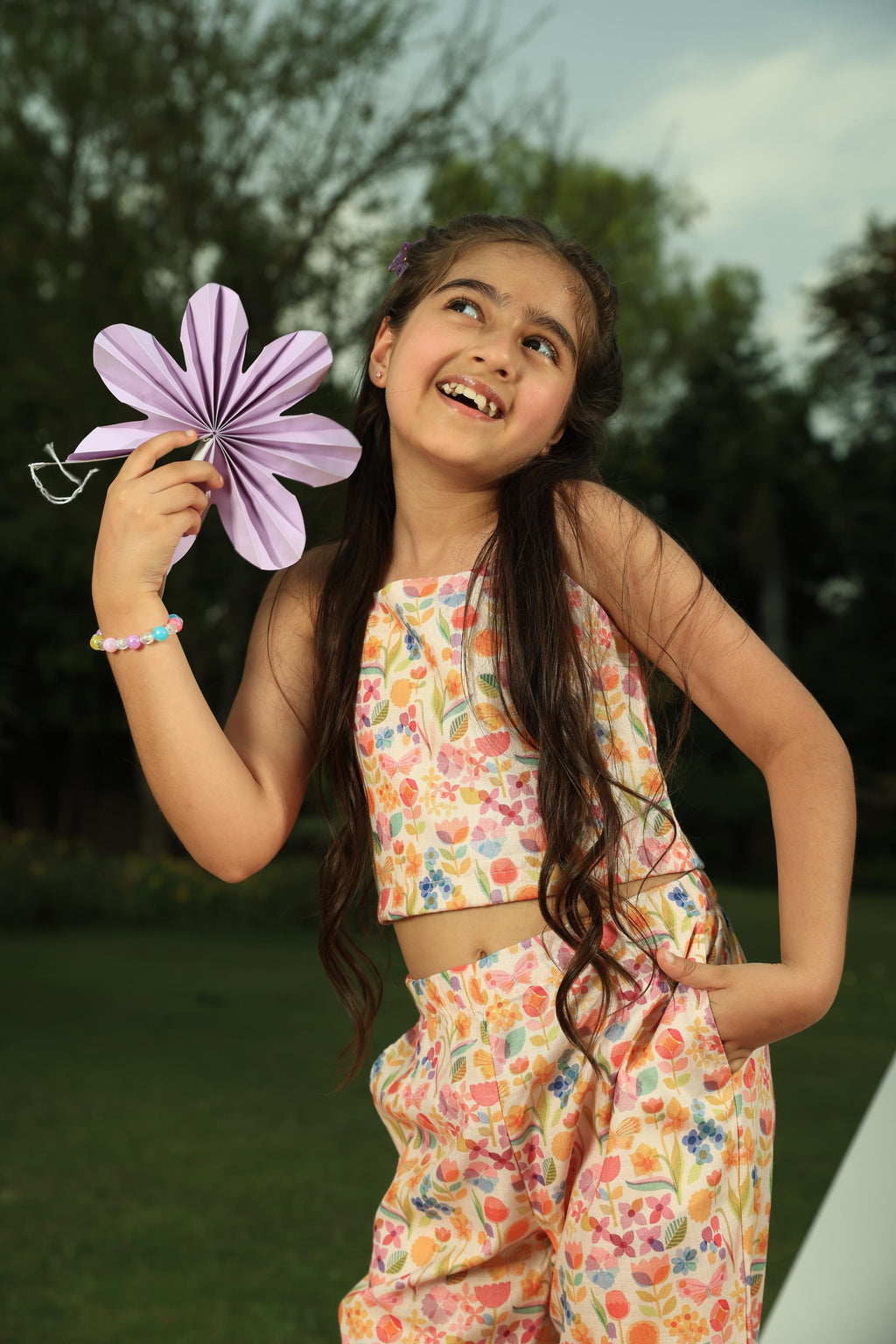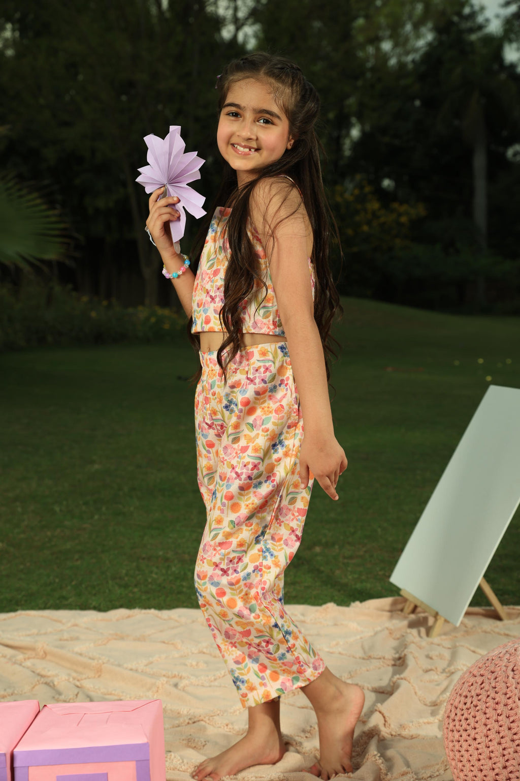This adorable Cutie Patuti two-piece set is crafted from the softest, breathable cotton to keep your little one comfy all day long. Featuring a lovely pastel floral print, a stretchy smocked back with a cute little bow, and breezy cropped pants, it's the absolute perfect outfit for twirling, exploring, and everyday play!